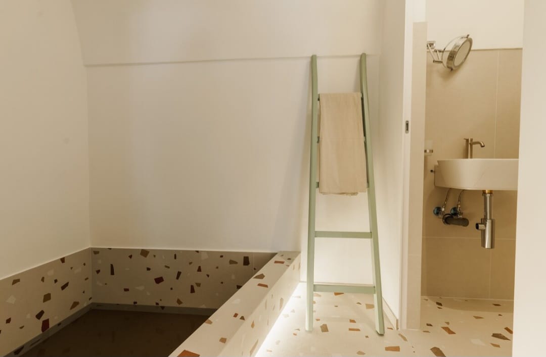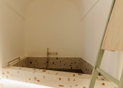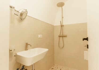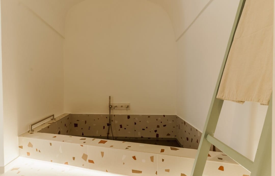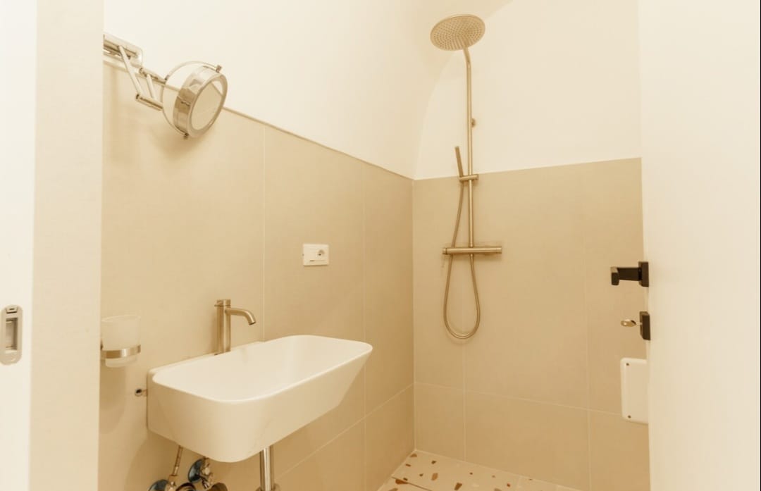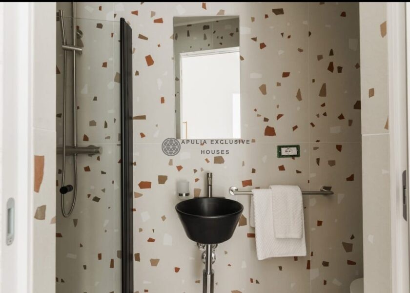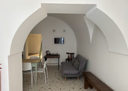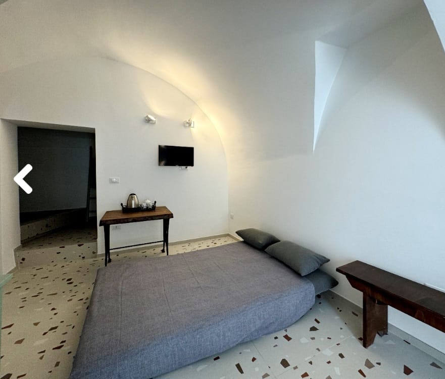 Ground Floor: Entrance into a spacious open-plan living area with a fitted kitchen and lounge. In the hallway leading to the bathroom, there is a large bathtub perfectly integrated into the home’s design, ideal for creating a private and stylish relaxation area. The vaulted stone ceilings (“volte a stella”) give the house an authentic and welcoming atmosphere.