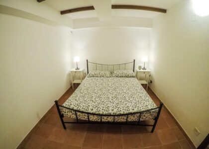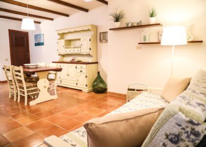 The main unit consists of a bright ground floor living area with lounge and kitchen, complemented by a practical guest bathroom. The first floor hosts the sleeping area with two bedrooms and a bathroom, offering privacy and comfort in an intimate and reserved atmosphere.