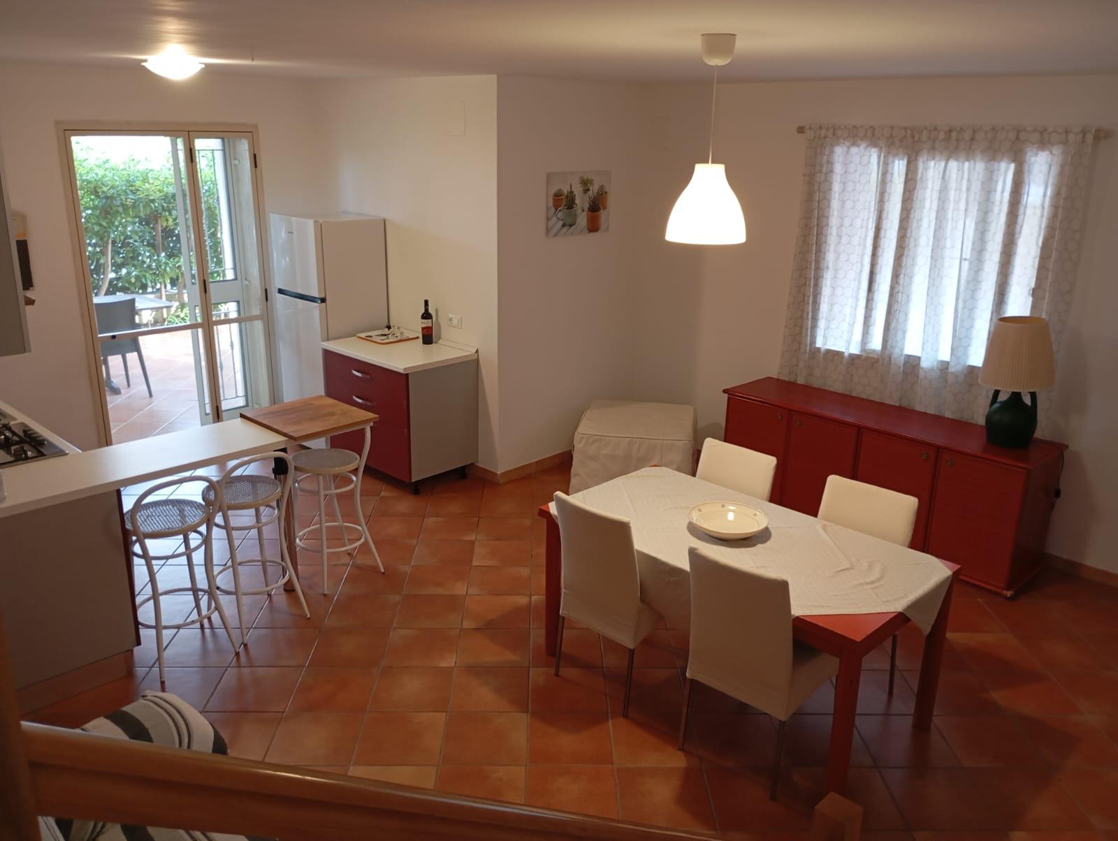 The main unit consists of a bright ground floor living area with lounge and kitchen, complemented by a practical guest bathroom. The first floor hosts the sleeping area with two bedrooms and a bathroom, offering privacy and comfort in an intimate and reserved atmosphere.