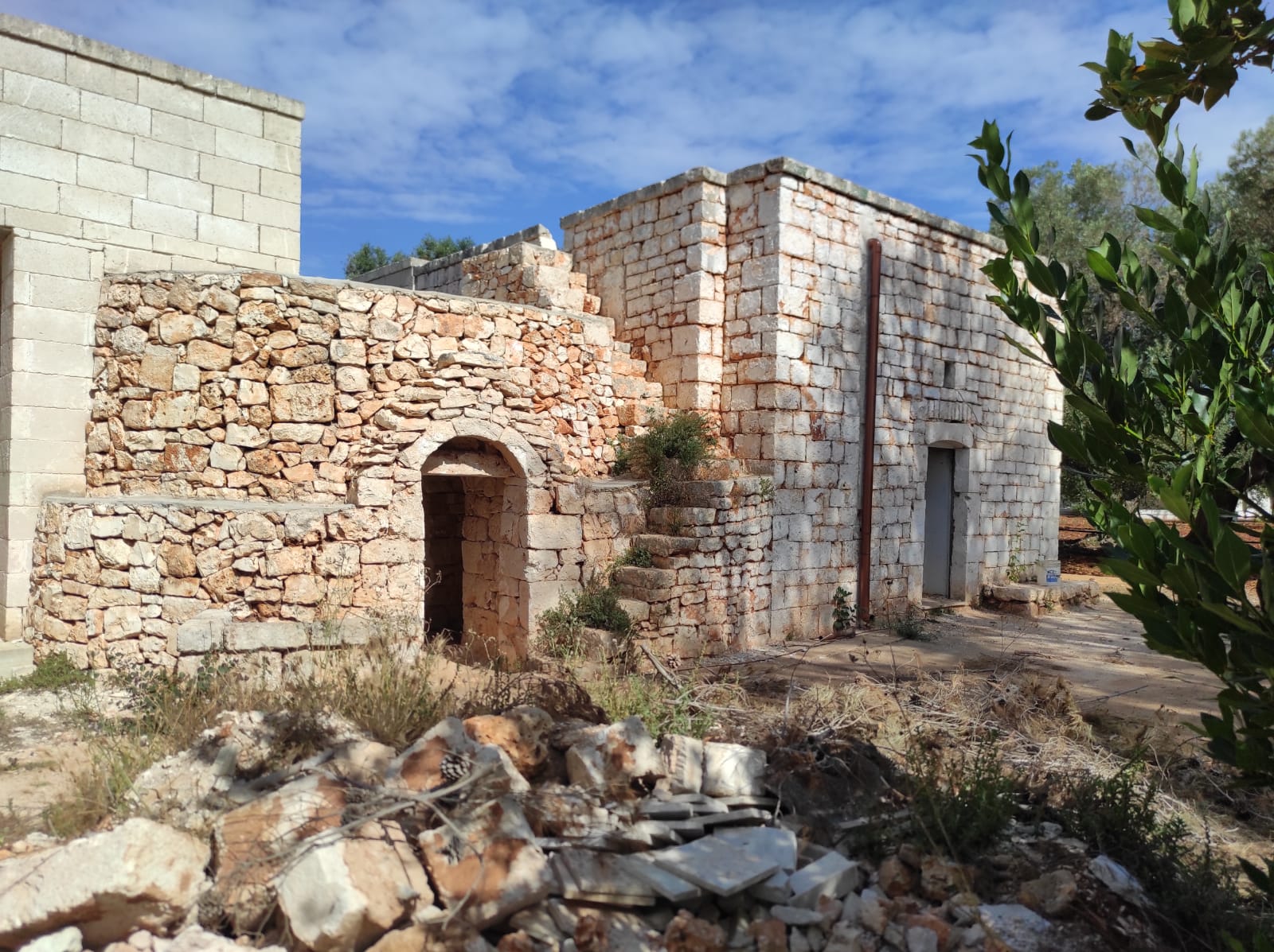 The estate extends over approximately one and a half hectares, dotted with centuries-old olive trees, almond trees, and a small vineyard in full production, as well as fruit trees and ornamental plants. At the heart of the property stands a charming complex consisting of a traditional trullo and ancient stone lamie, carefully restored and expanded to perfectly blend tradition and modern comfort.