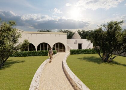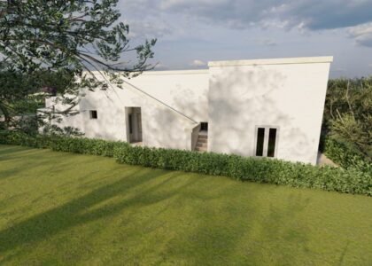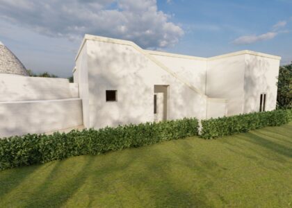 The approved project includes the careful restoration of the original trullo, along with the creation of an elegant and functional extension. Inside the trullo, there is a bedroom with a private bathroom, internally connected to the new building which comprises a spacious living room with an open-plan kitchen, two bedrooms, and two bathrooms.