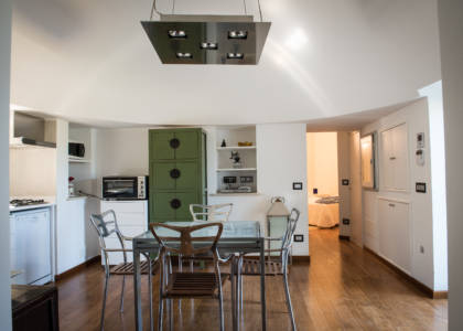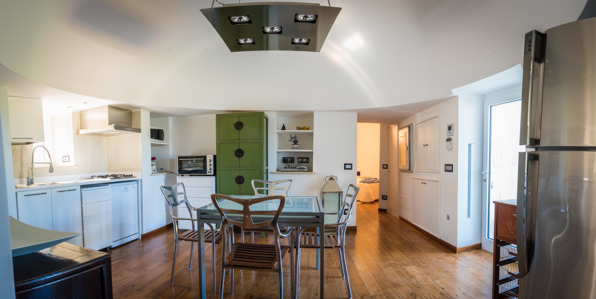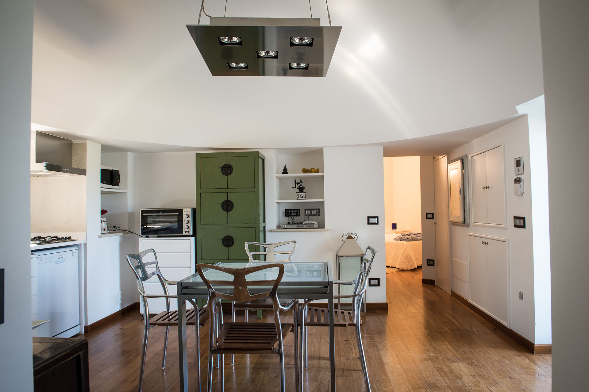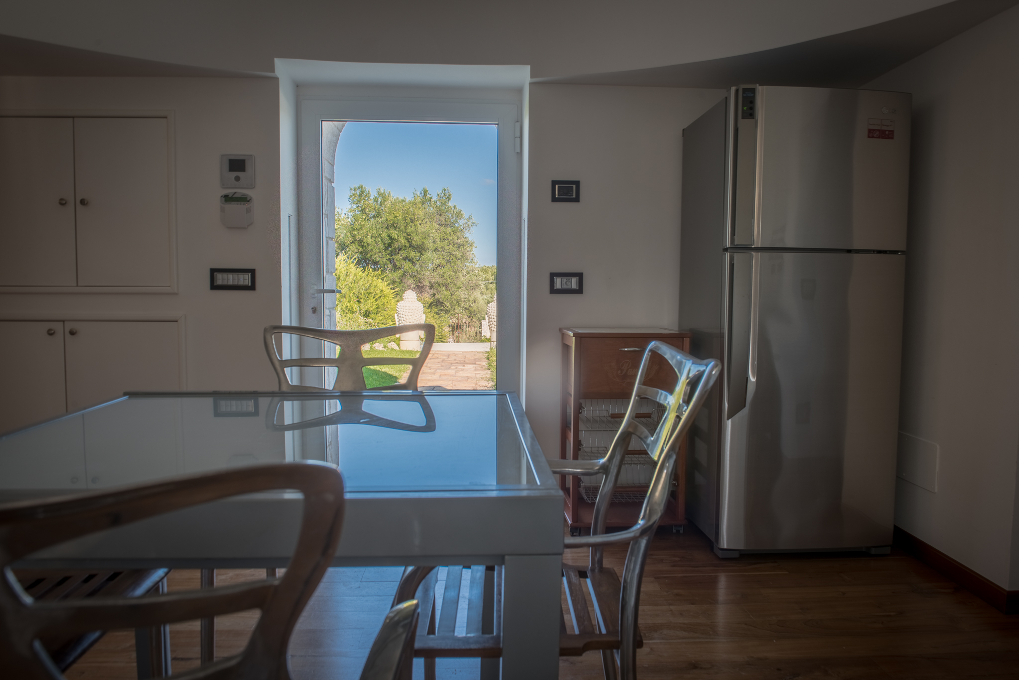 Trullo Anima consists of 87 square meters well distributed (entrance, dining room with kitchenette, living room with TV corner, one bedroom and two bathrooms with shower) and embellished with elegant modern and oriental furniture.