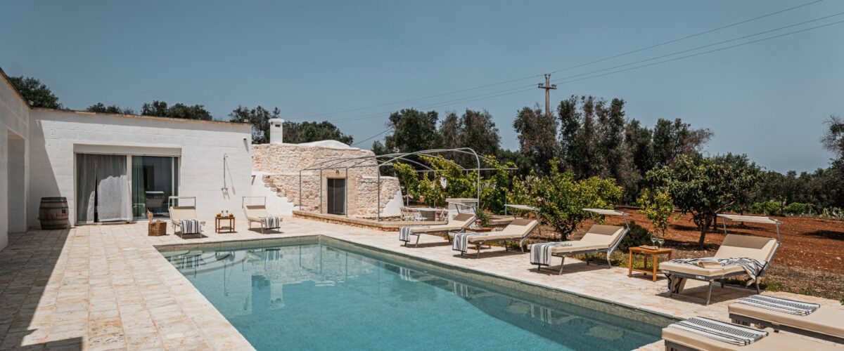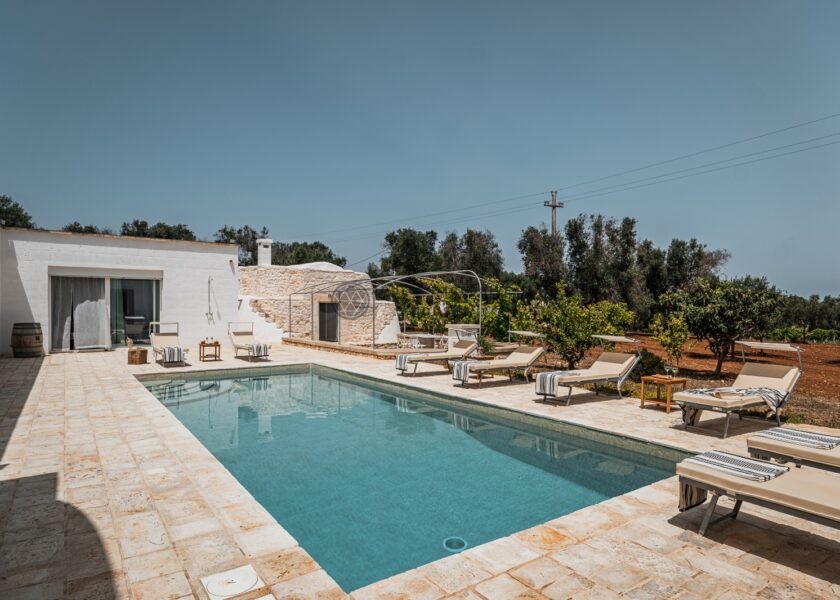 Villa Calidi showcases an architectural blend of tradition and modernity, combining the authentic charm of a Saracen Trullo with the elegance and comfort of contemporary living spaces.