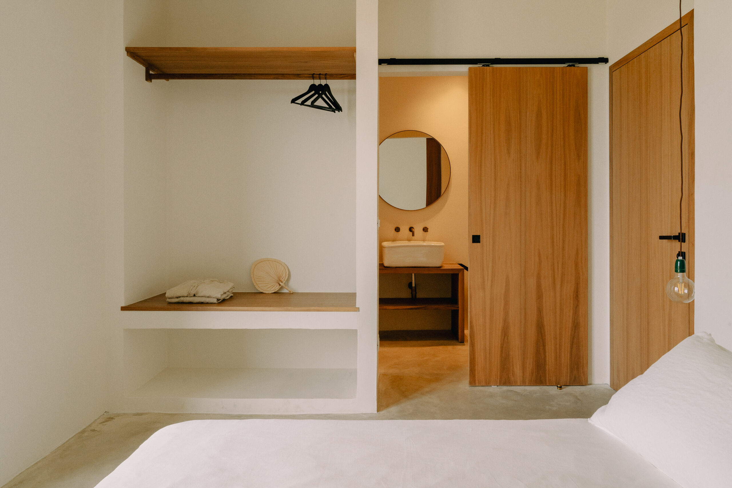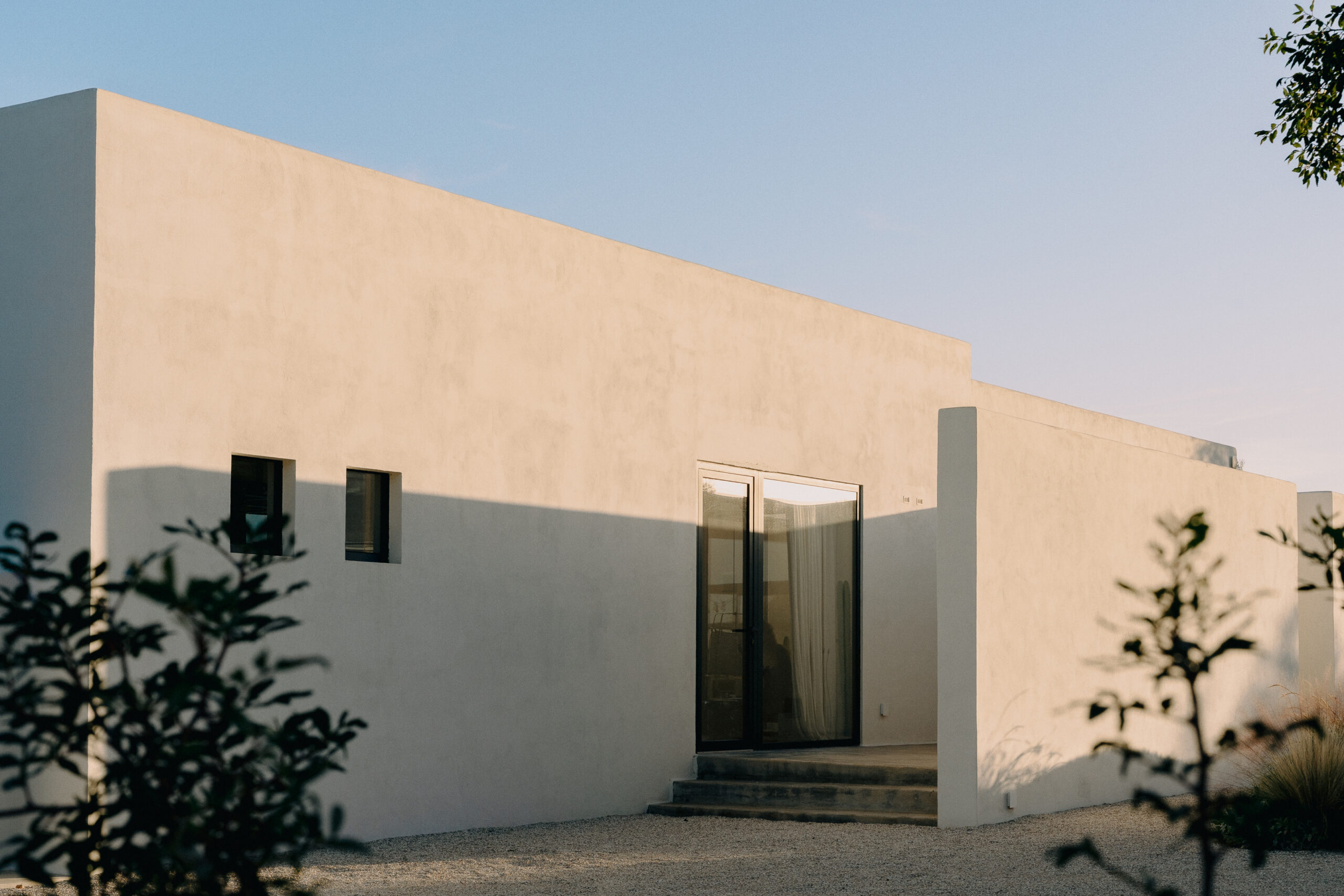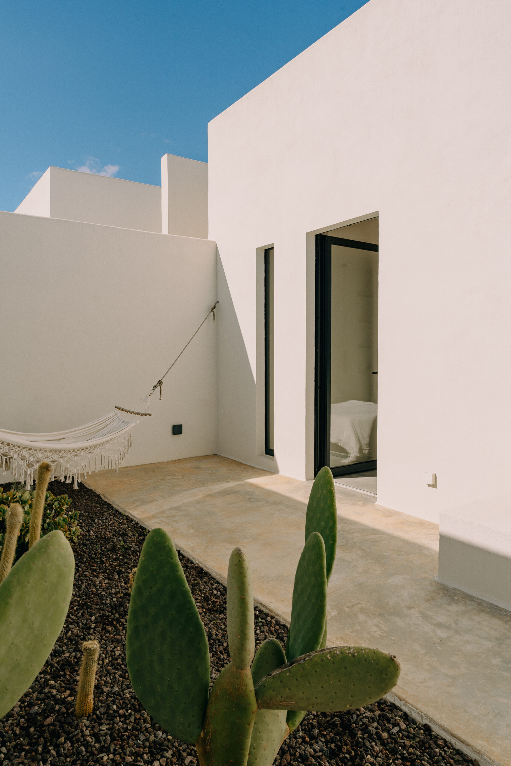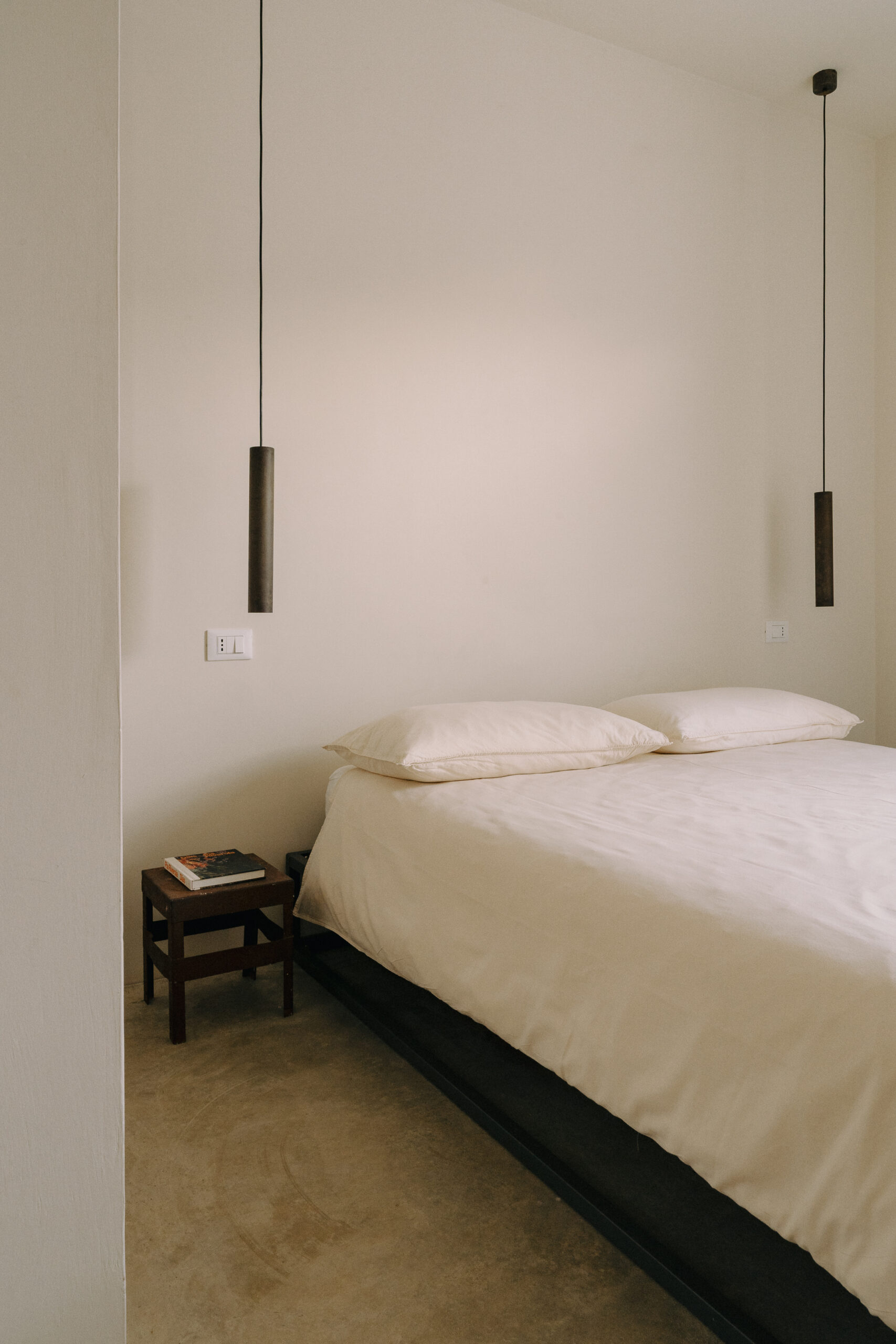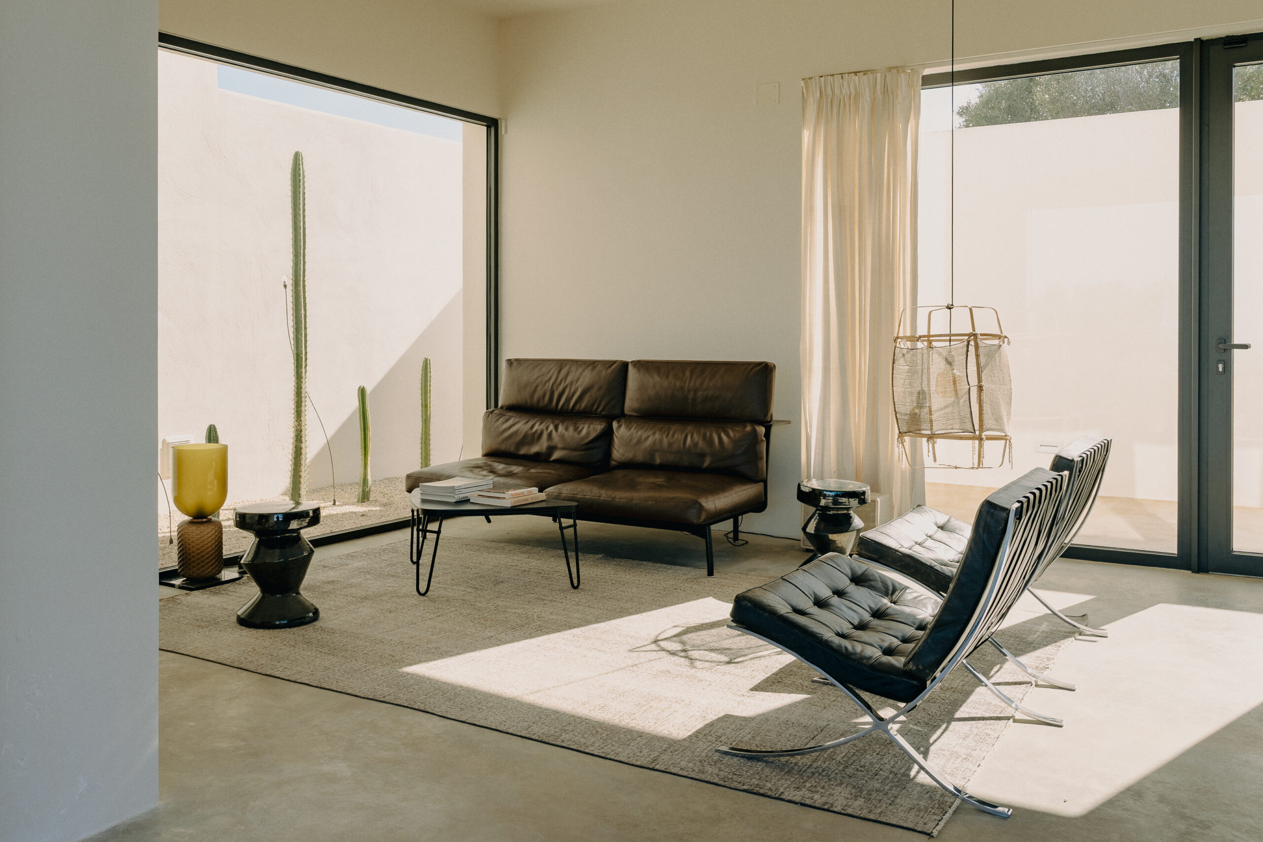 Three double bedrooms, each with a private bathroom and an outdoor courtyard with showers. An additional bathroom offers more privacy and comfort for all guests. All suites are simply but elegantly furnished and overlook the garden and grove with a glimpse of the sea view.