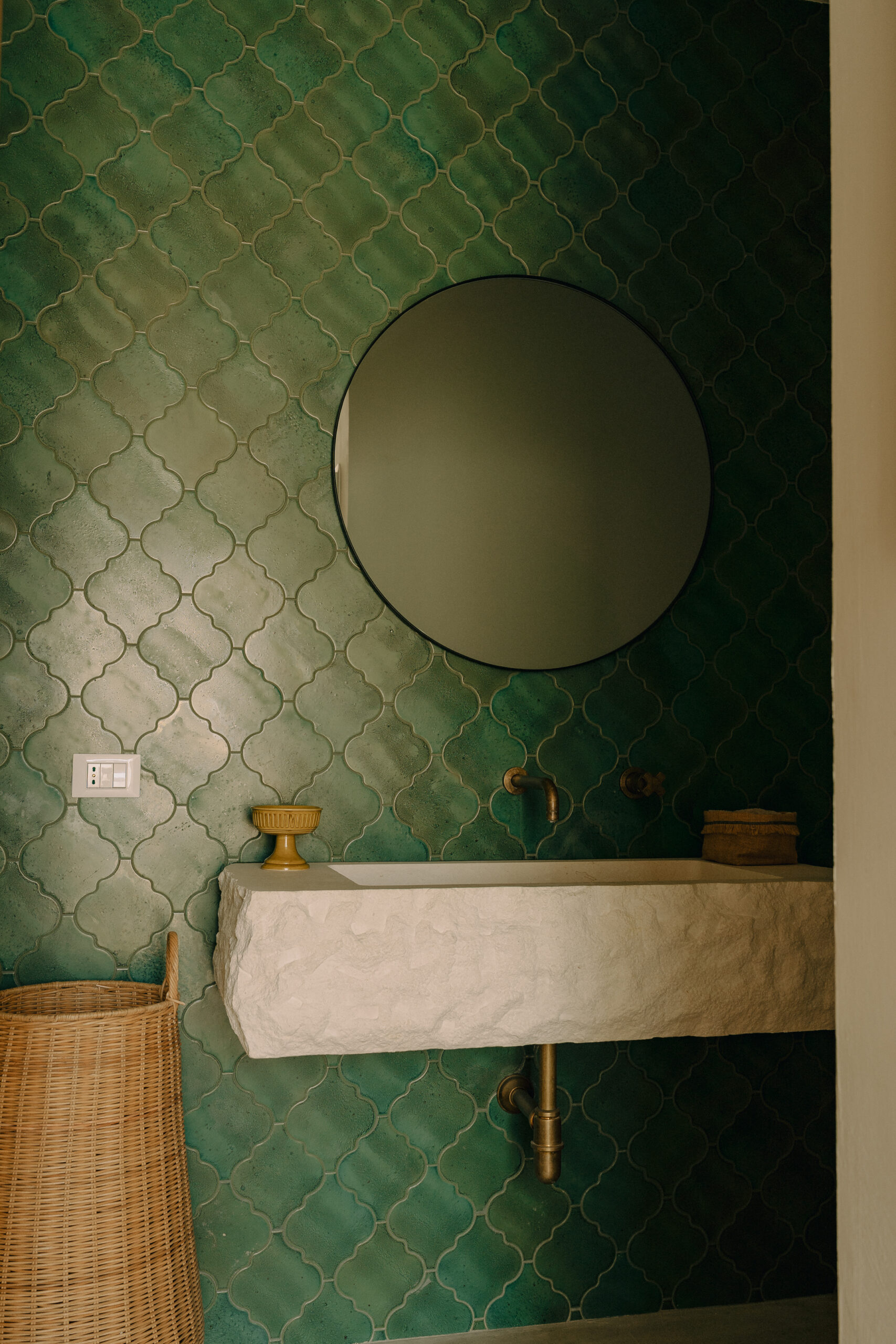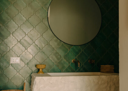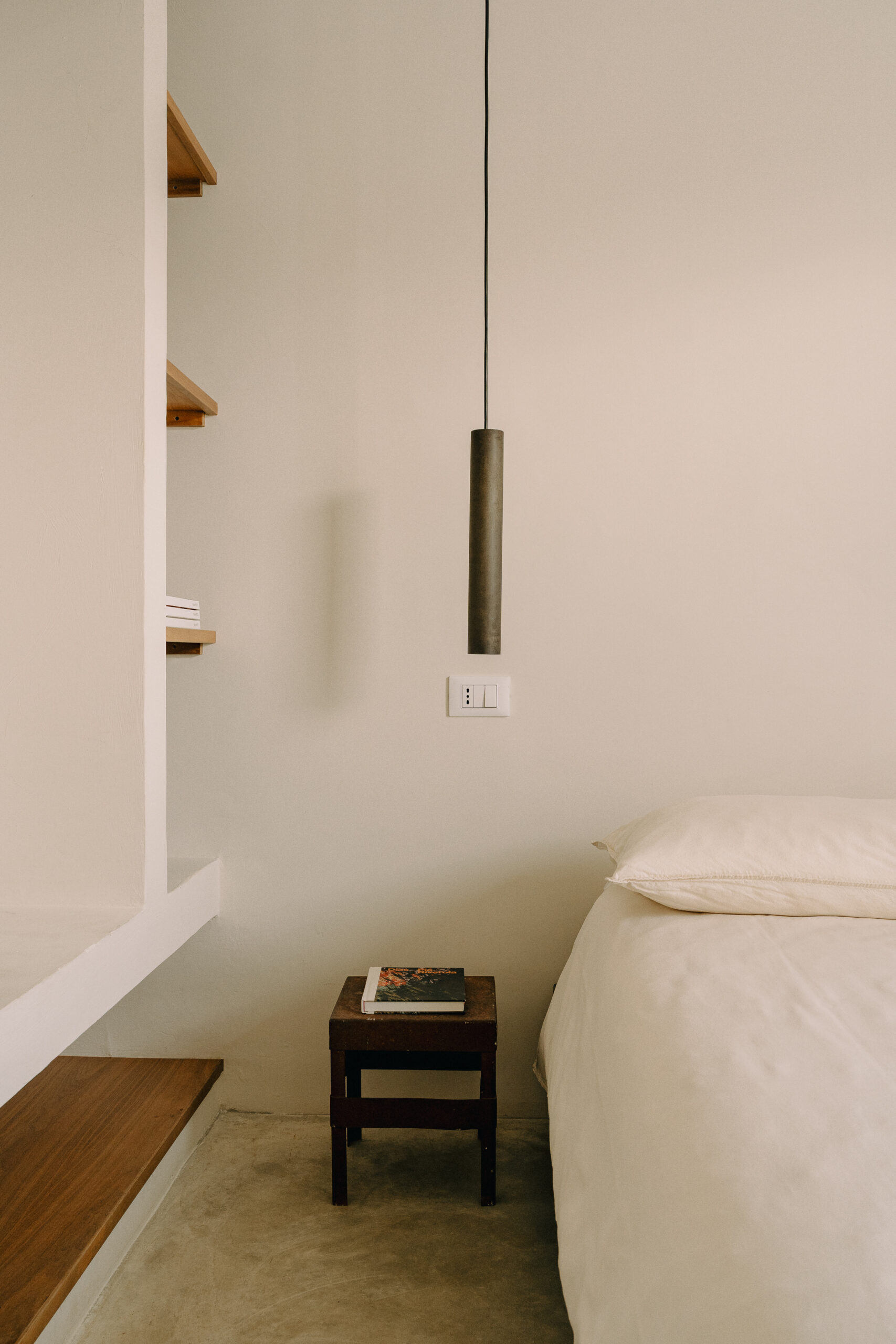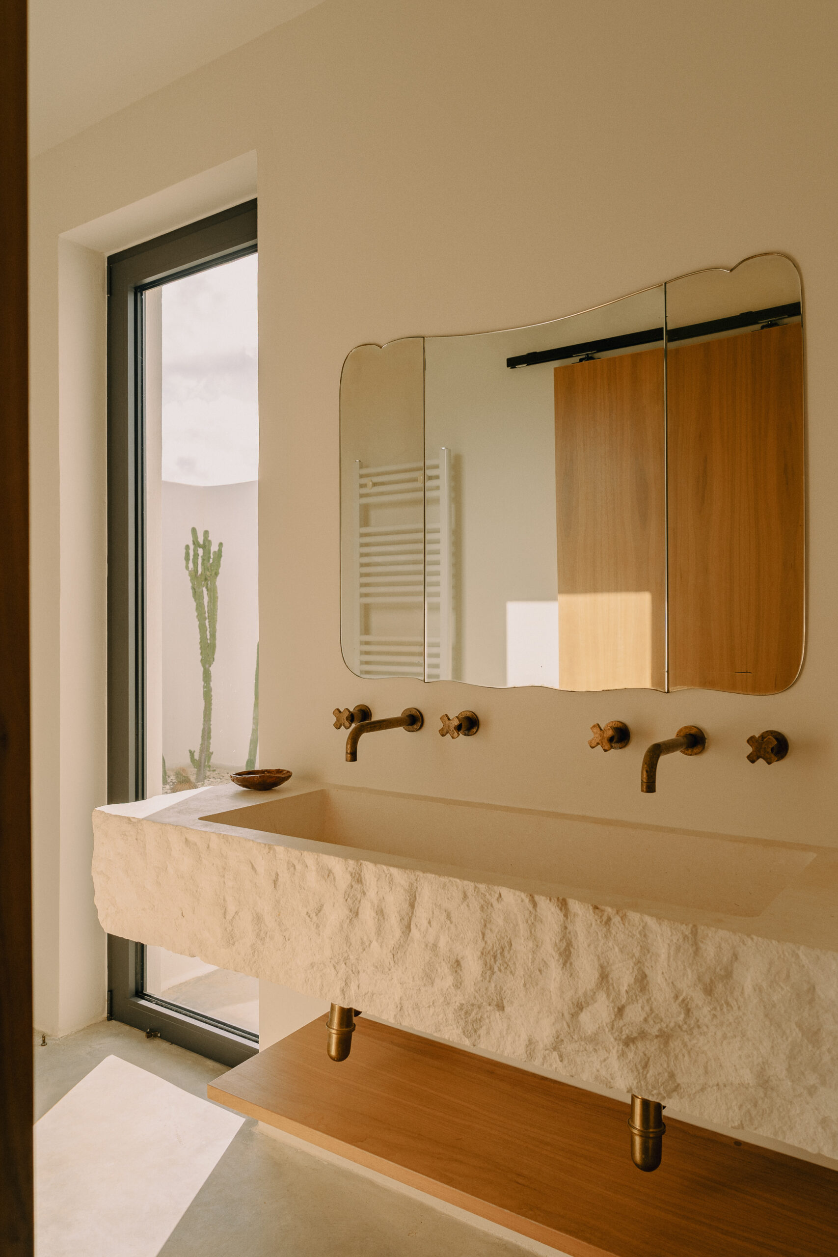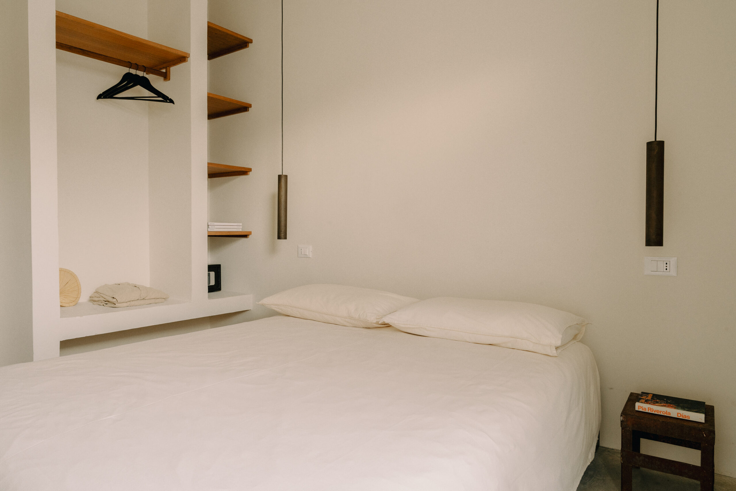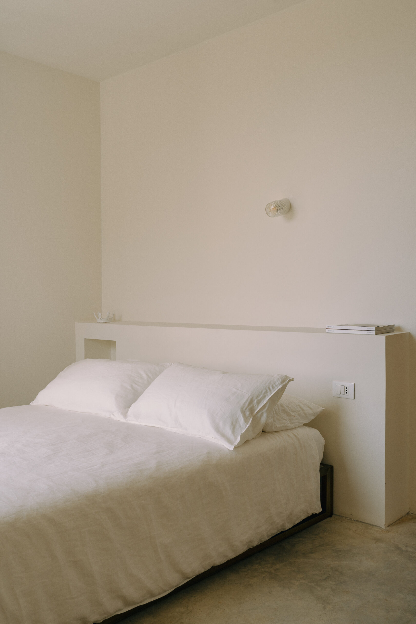 Three double bedrooms, each with a private bathroom and an outdoor courtyard with showers. An additional bathroom offers more privacy and comfort for all guests. All suites are simply but elegantly furnished and overlook the garden and grove with a glimpse of the sea view.