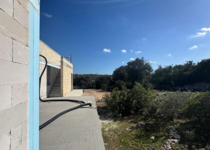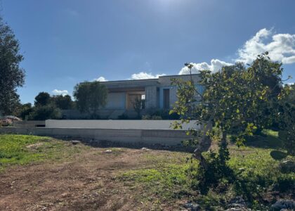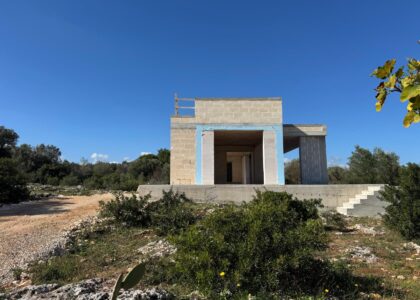 Il progetto prevede la costruzione di Villa Belvedere, una residenza moderna e raffinata immersa nella quiete della campagna pugliese. La villa, attualmente allo stato rustico, è composta da un ampio porticato ideale per arredare una zona pranzo e relax esterna, con vista sulla futura piscina e sul giardino circostante. L’ingresso principale conduce alla zona living con soggiorno, sala da pranzo e cucina open space, caratterizzata da ampie vetrate scorrevoli che donano luminosità e consentono l’accesso diretto alla veranda posteriore con pergolato e vista sul verde.