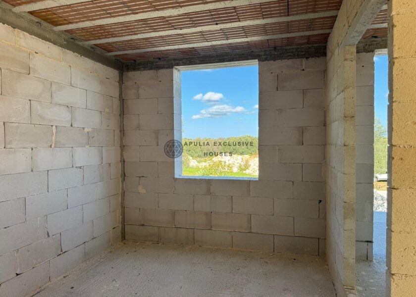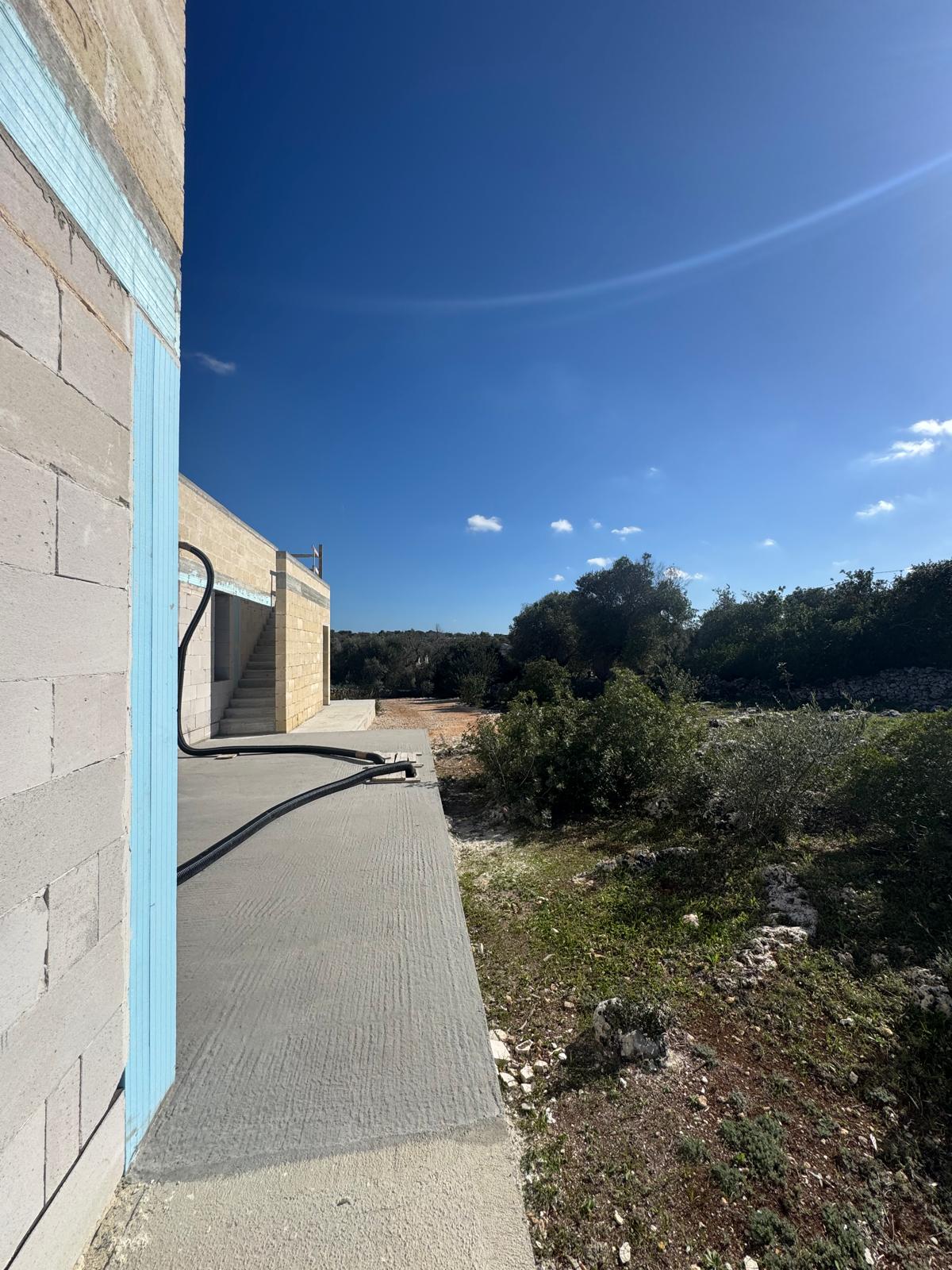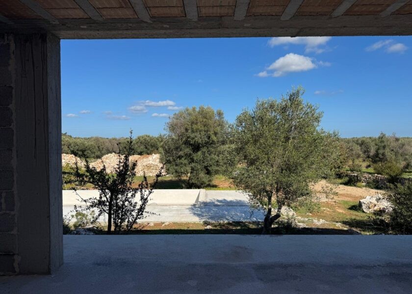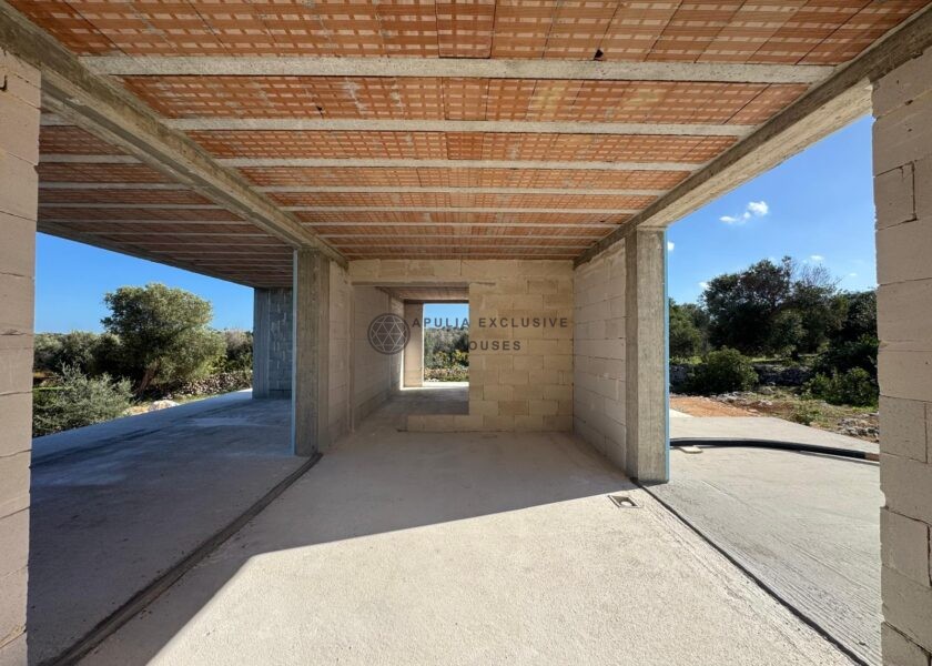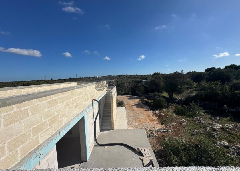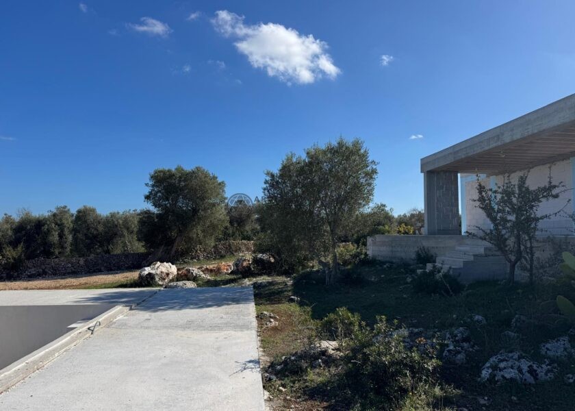 Il progetto prevede la costruzione di Villa Belvedere, una residenza moderna e raffinata immersa nella quiete della campagna pugliese. La villa, attualmente allo stato rustico, è composta da un ampio porticato ideale per arredare una zona pranzo e relax esterna, con vista sulla futura piscina e sul giardino circostante. L’ingresso principale conduce alla zona living con soggiorno, sala da pranzo e cucina open space, caratterizzata da ampie vetrate scorrevoli che donano luminosità e consentono l’accesso diretto alla veranda posteriore con pergolato e vista sul verde.