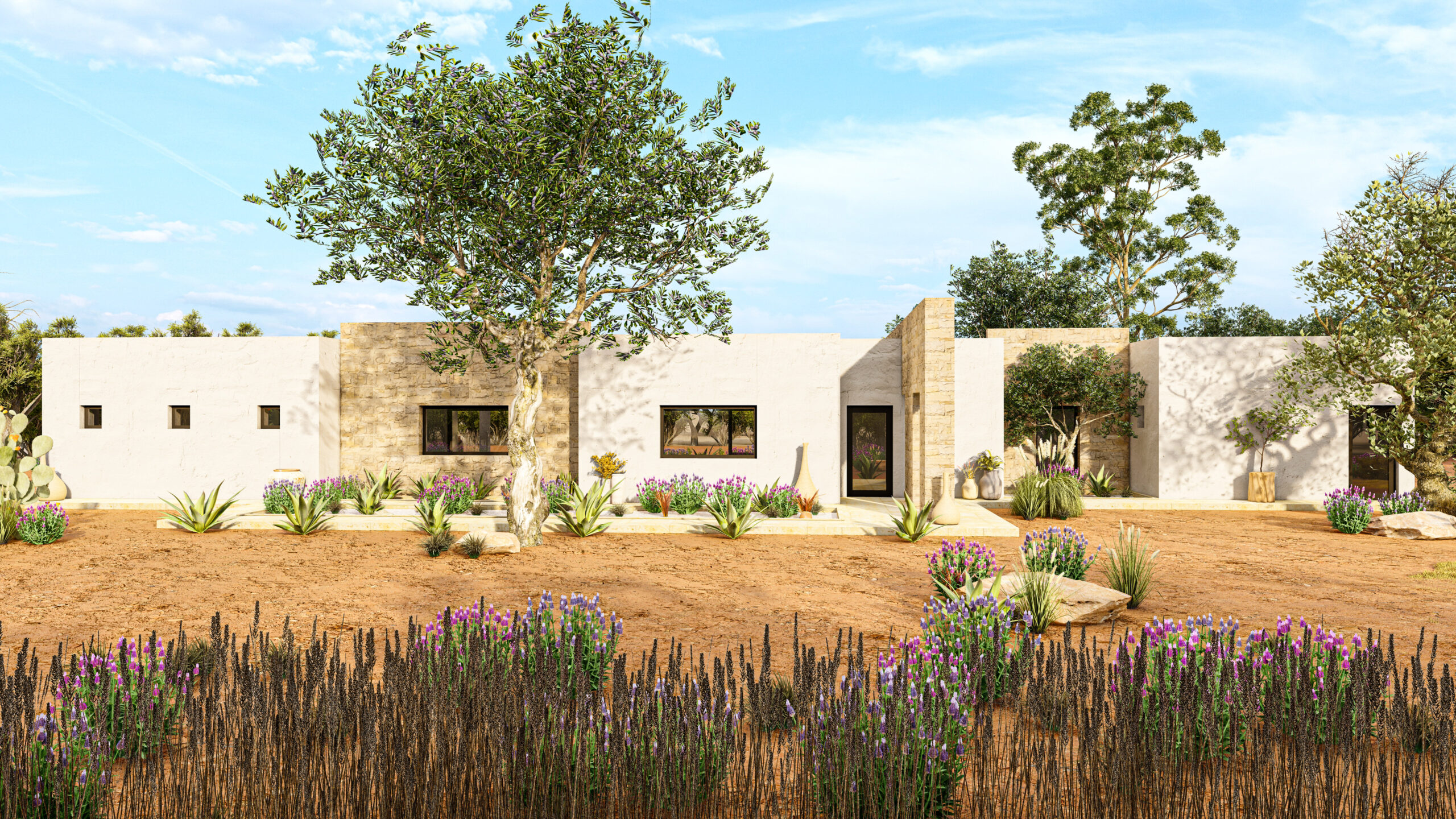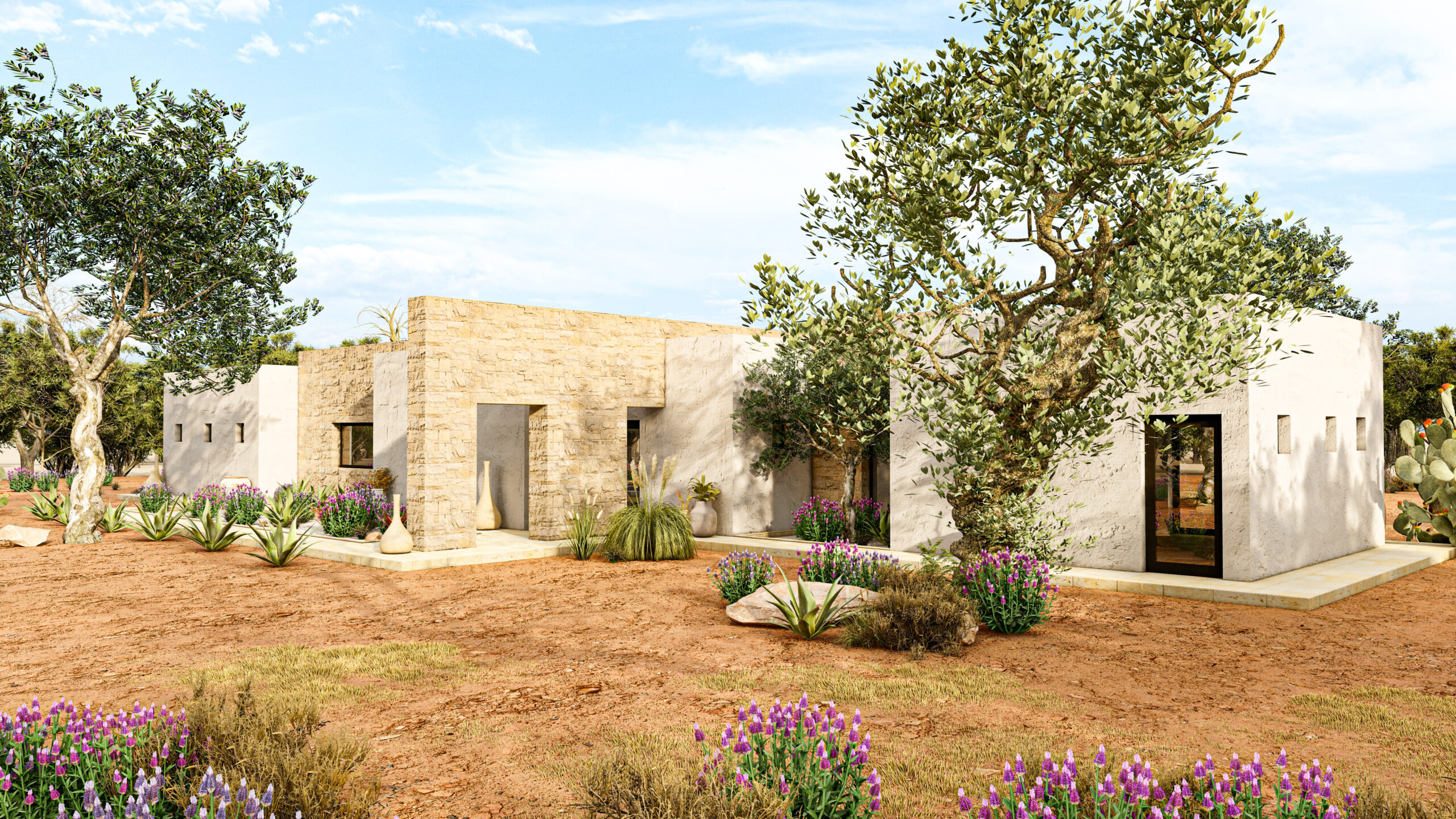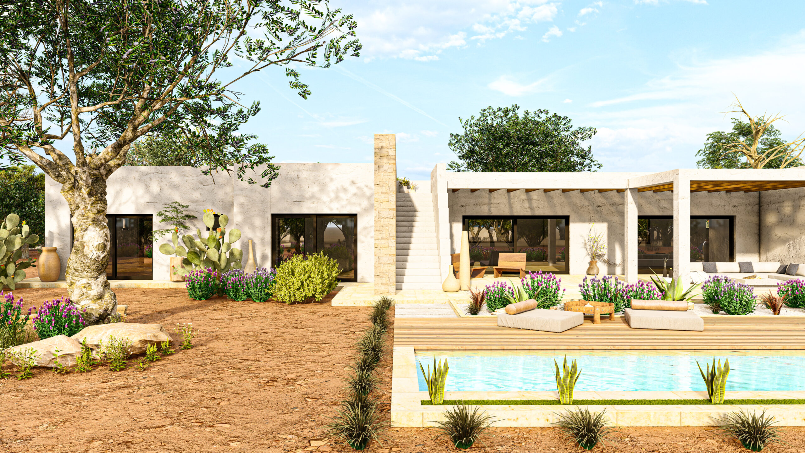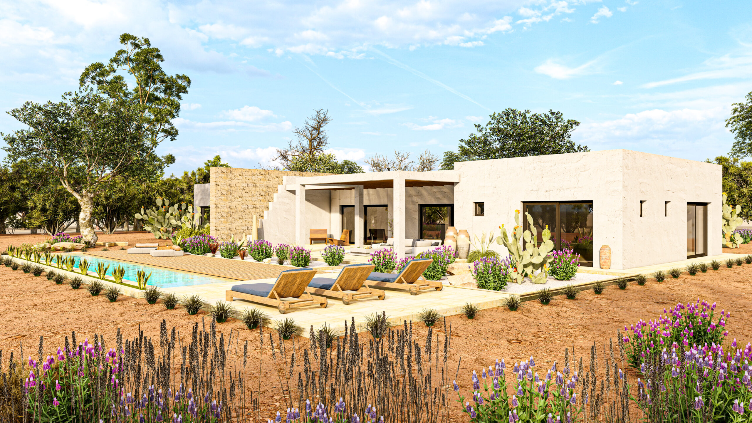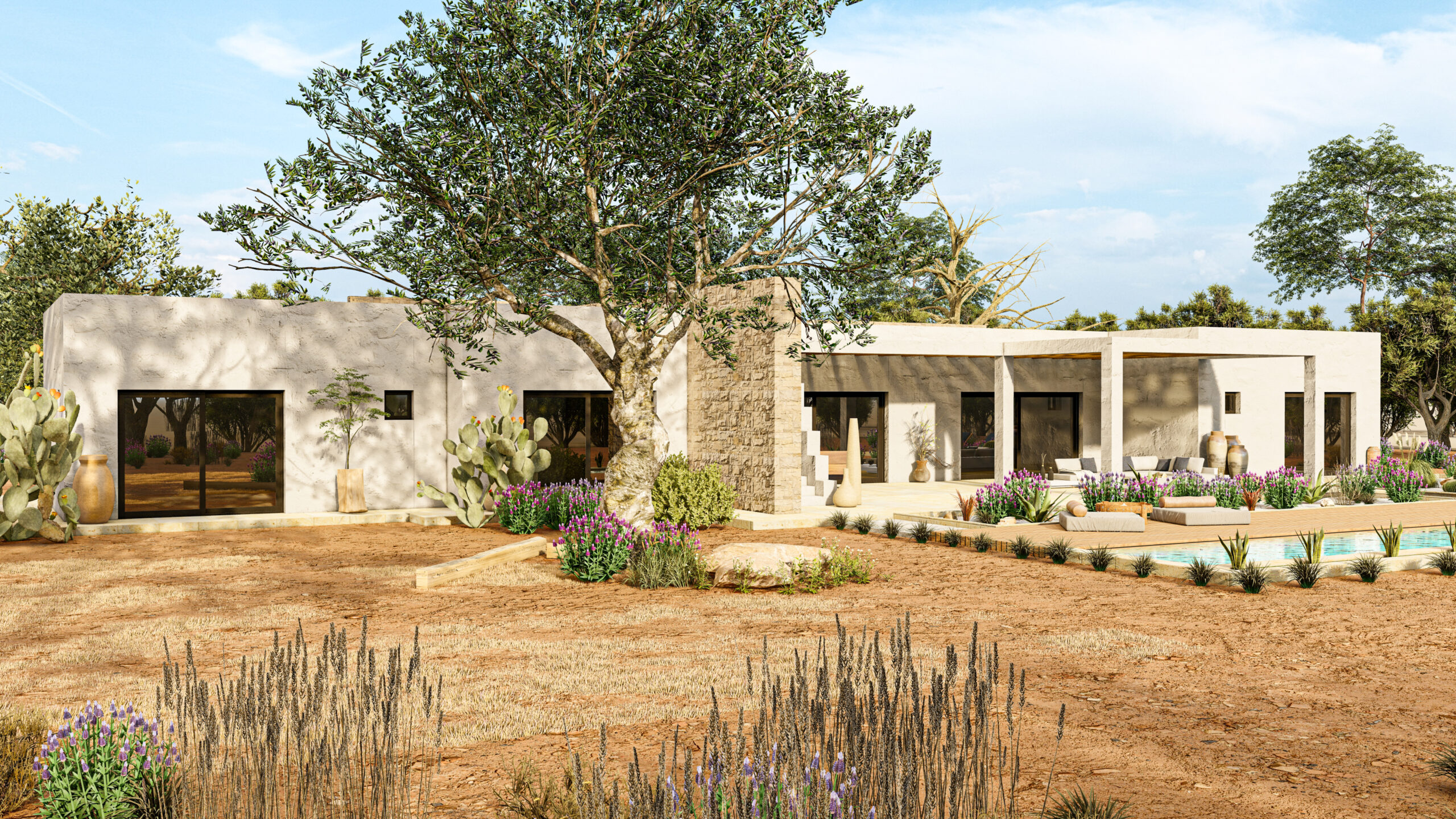 L’intero progetto è stato concepito come un intervento perfettamente integrato nel paesaggio, capace di valorizzare ogni elemento naturale esistente e trasformarlo in un’esperienza abitativa esclusiva.