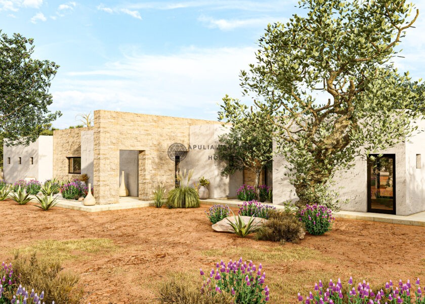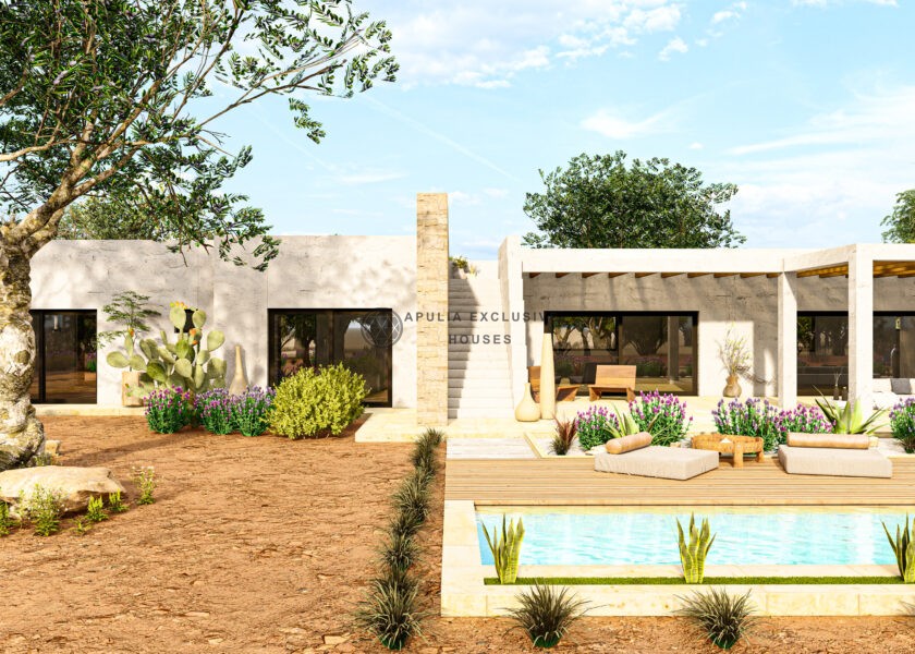 La proprietà include un progetto già approvato, con oneri interamente pagati, per la realizzazione di una villa esclusiva con piscina, firmata dallo studio Apulia Exclusive Houses. Il concept architettonico unisce linee moderne e materiali locali, reinterpretando in chiave contemporanea l’estetica tradizionale del territorio.