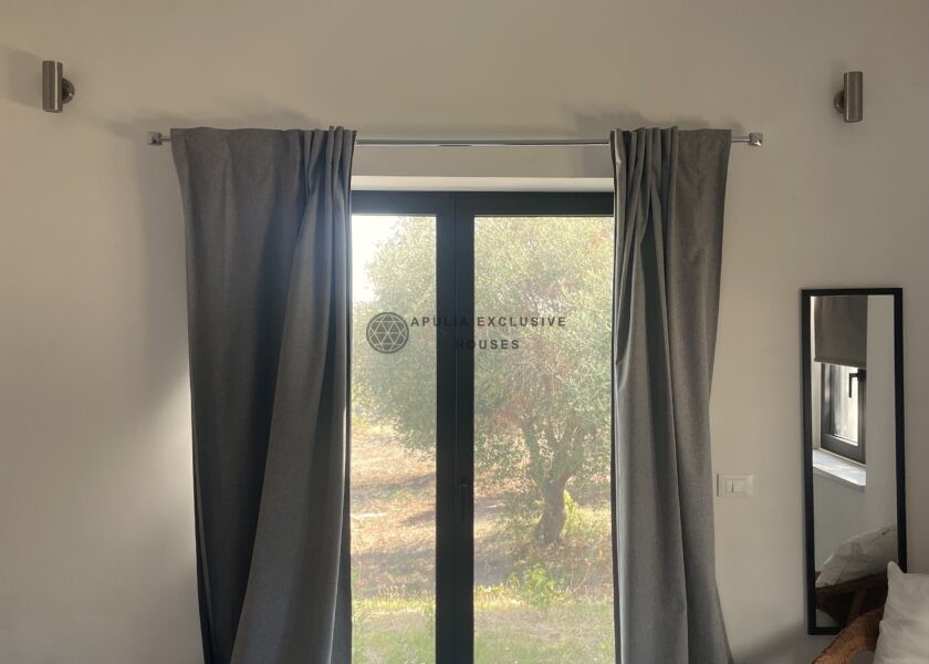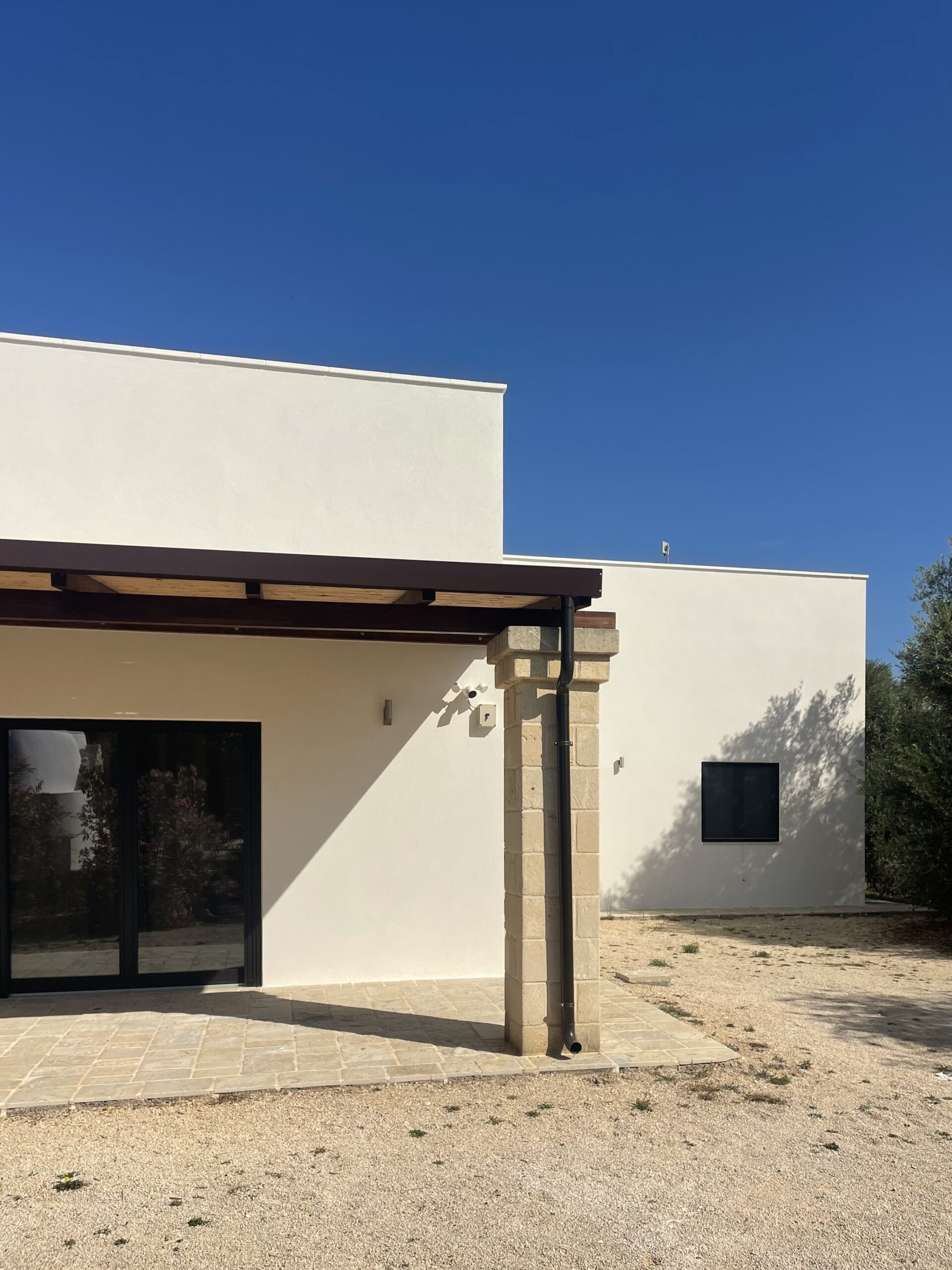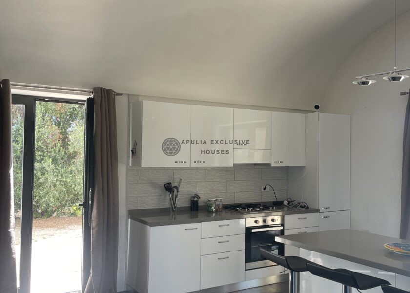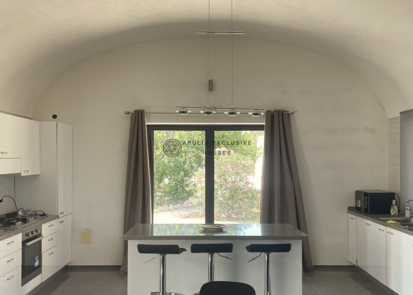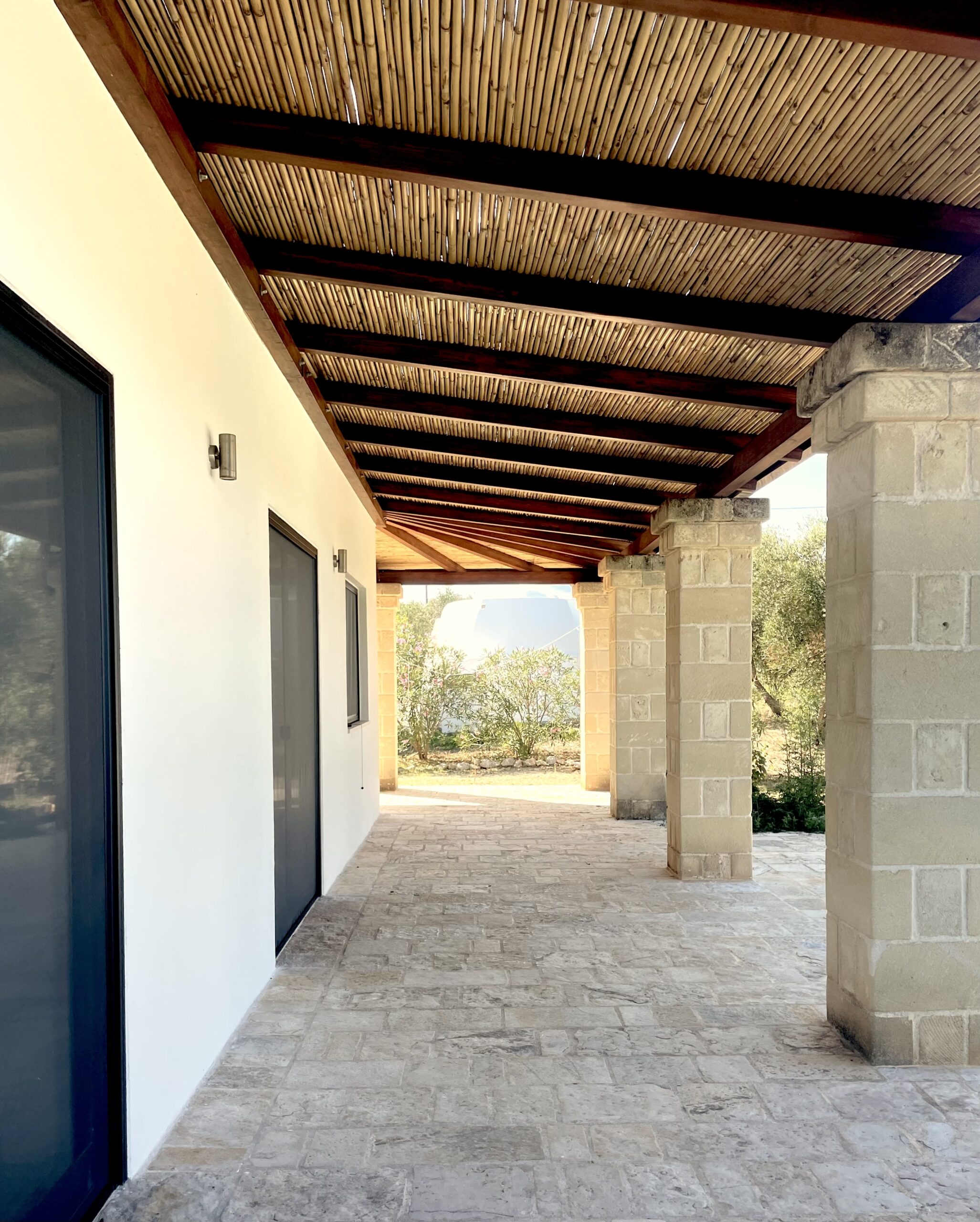 La residenza nasce dall’incontro armonico tra architettura tradizionale pugliese e comfort contemporaneo. Il trullo in pietra, finemente restaurato, convive con la villa moderna creando un insieme elegante e funzionale. Linee pulite, ambienti luminosi e materiali autentici — pietra locale, legno naturale e toni neutri — definiscono un’estetica mediterranea sobria e accogliente. Le ampie aperture mettono in dialogo gli interni con il paesaggio circostante, trasformando ogni scorcio in un quadro rurale.