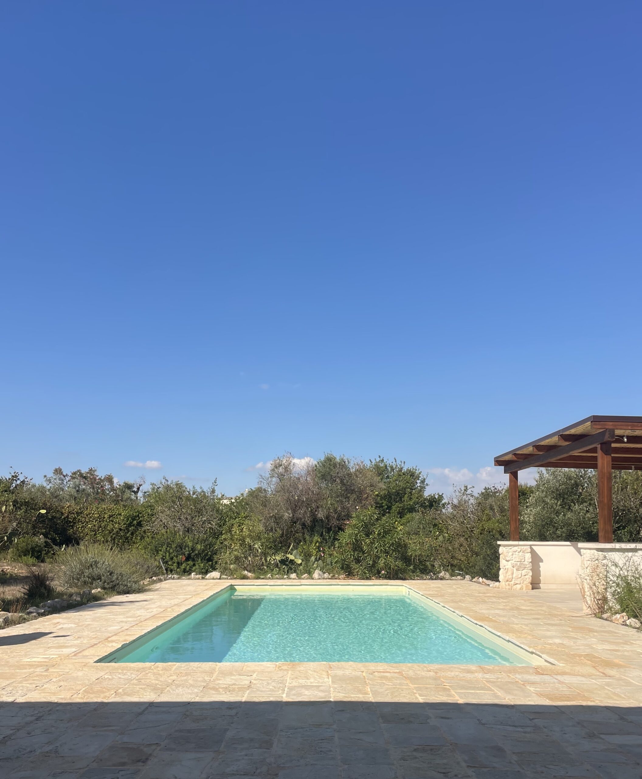 • Piscina privata 10×4 m, circondata da solarium e zona lounge.